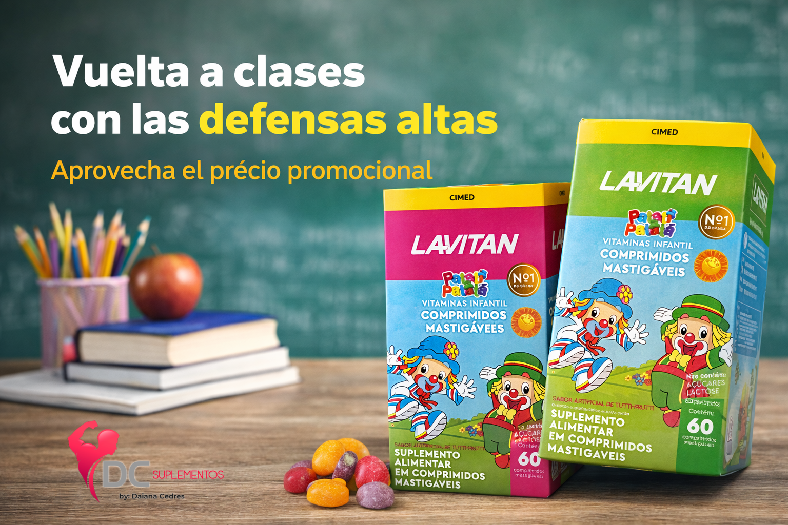 Prepara a los más chicos para la vuelta a clases con Lavitan Vitaminas Infantiles. Refuerza sus defensas de forma práctica y deliciosa, y aprovecha nuestro precio promocional por tiempo limitado. ¡Comprá ahora y empezá el año con energía!
