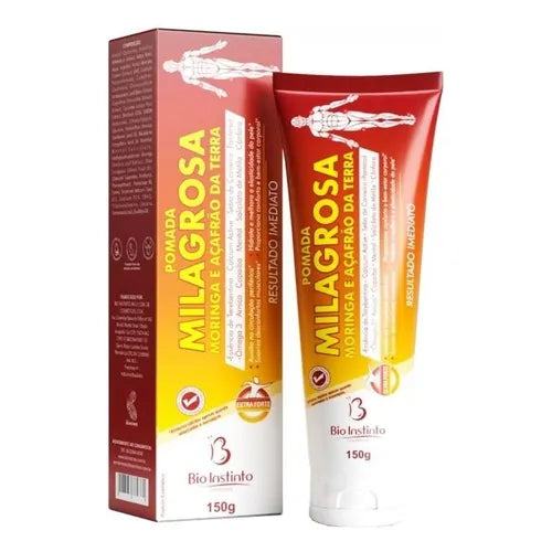 La Pomada Milagrosa es una crema de uso tópico desarrollada con extractos naturales de Moringa y Cáprao da Terra, tradicionalmente utilizados para brindar alivio localizado, sensación de bienestar y apoyo en molestias musculares y articulares.